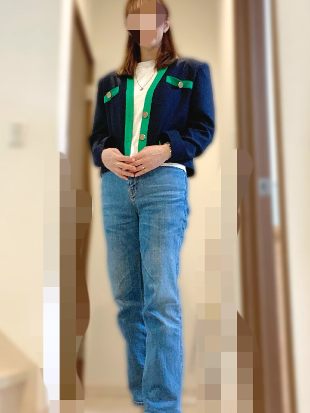 謝恩会🌸😭🌸 子供制服、普段着とのことでしたので、少しだけ感謝を伝えるジャケット✖️デニムで💙💚👖 浮き過ぎず、自分らしさも添えて✨号泣😭