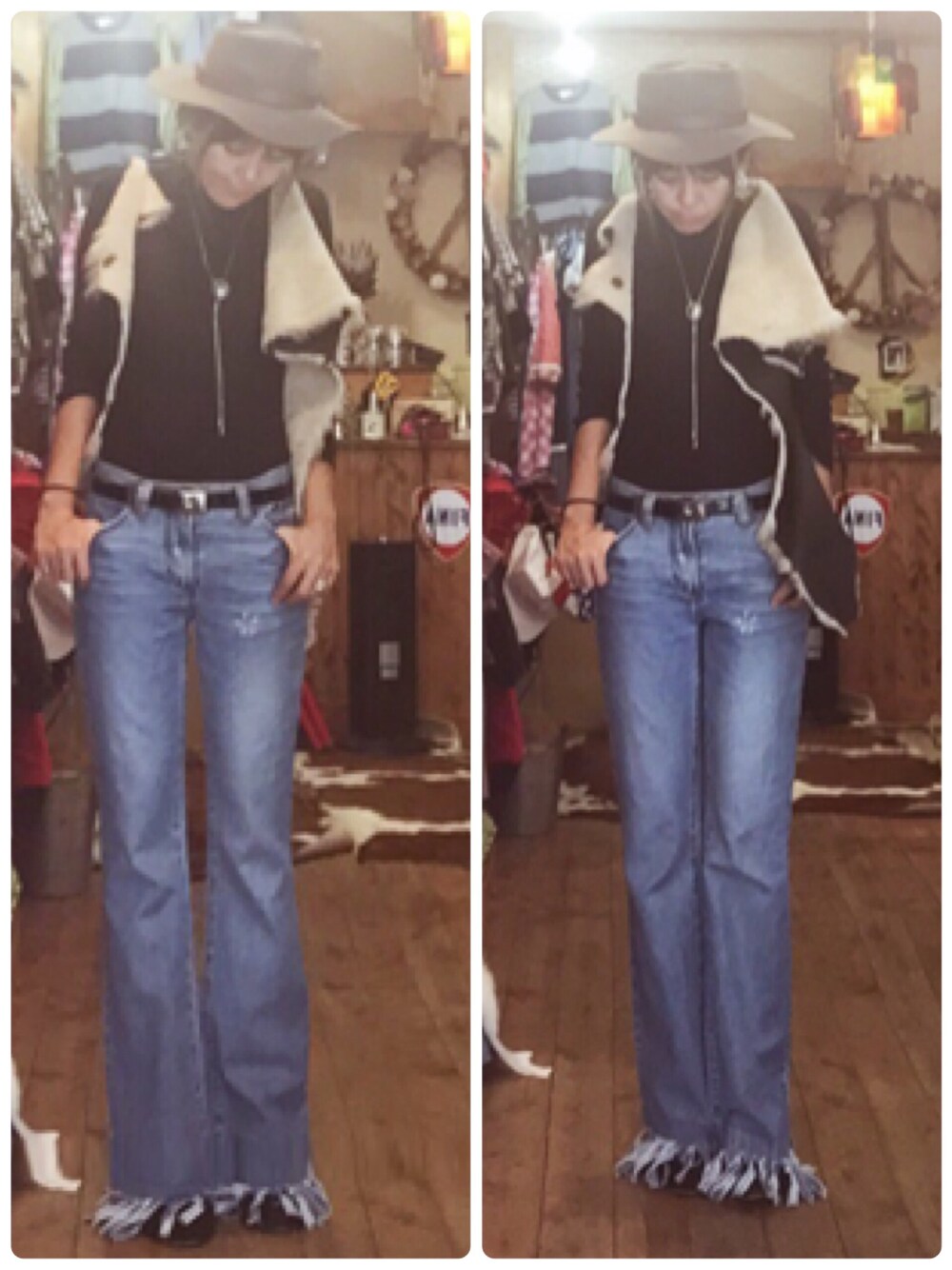 ムートンをサクサク切ってベスト風に✨ ムートンあったかい😚 フリンジデニム