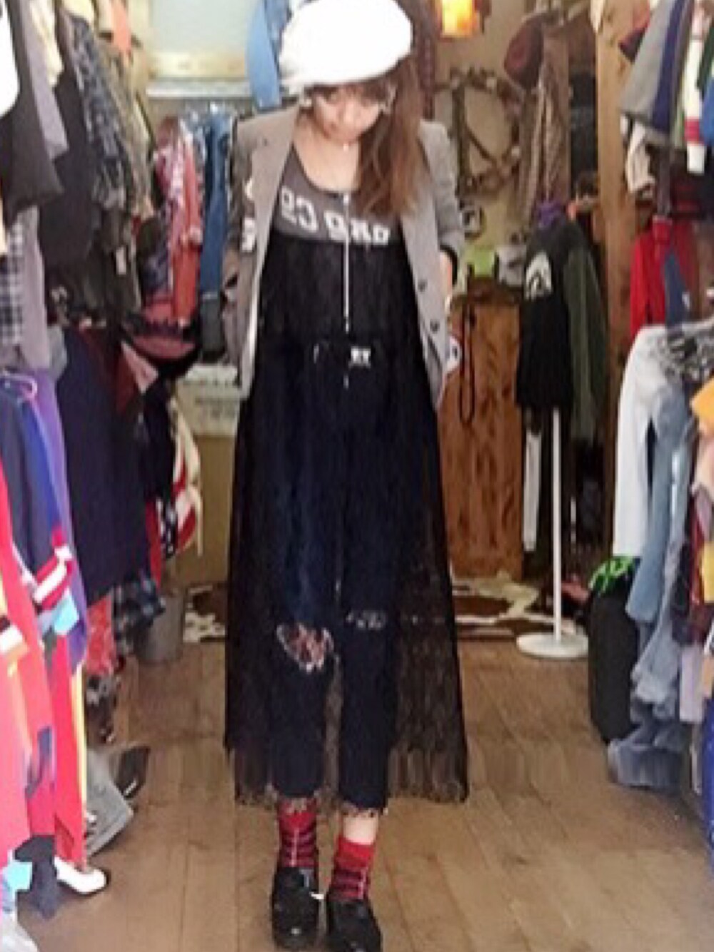 こんにちは✨ ご訪問ありがとうございます✨🙏 usedTロングレースリメイクT usedキッズjk クラッシュスキニーLEE