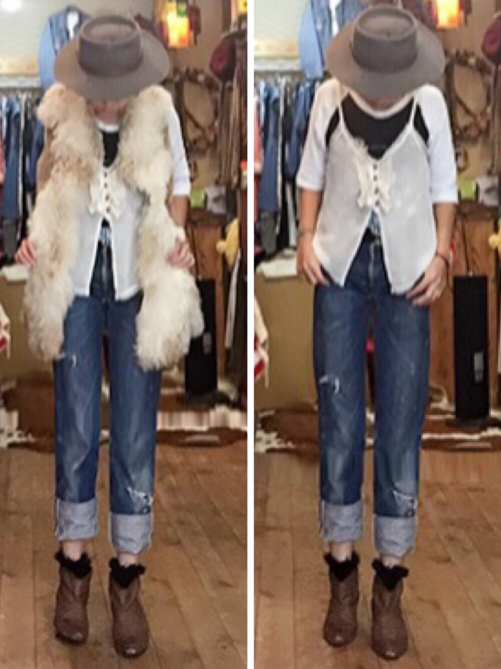 ご訪問ありがとうございます✨ Greatful Deadのラグランにフランスアンティークキャミを重ねて。 リメイクファーベスト