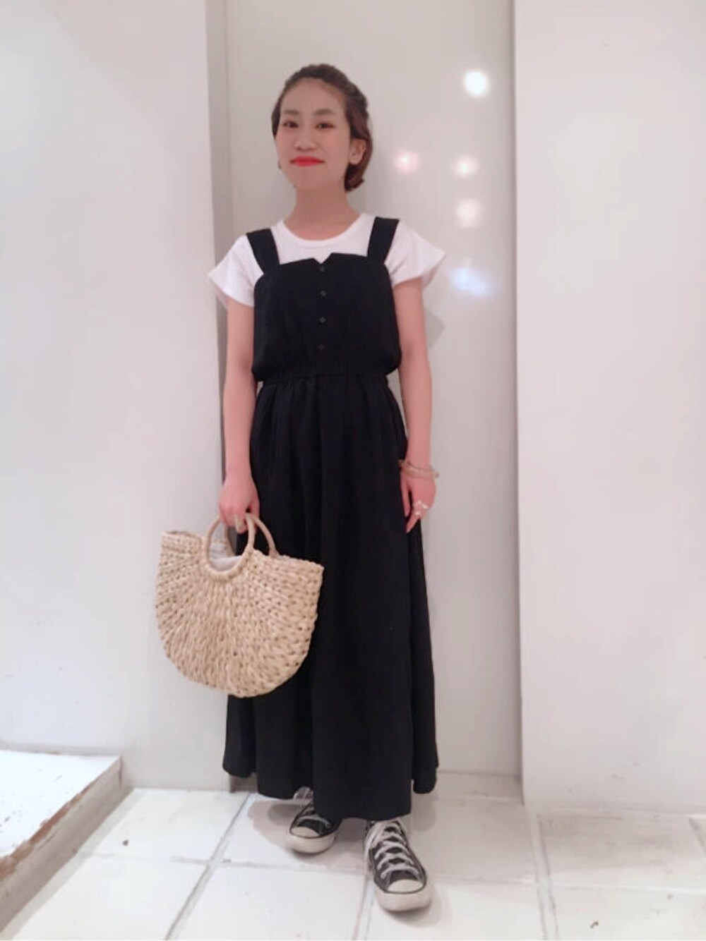 flower(flower )のワンピース「apron maxi onepiece~エプロンマキシワンピース」を使ったコーディネート