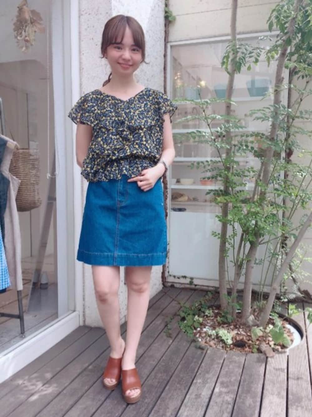 flower(flower )のデニムスカート「glossy denim skirt~グロッシーデニムスカート」を使ったコーディネート