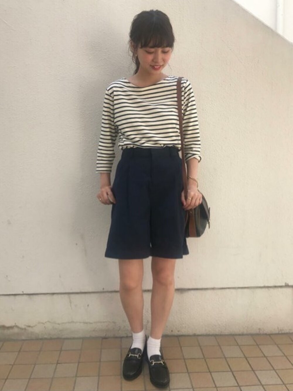 flower(flower )のTシャツ/カットソー「Healthknit border top ~ヘルスニットボーダートップ」を使ったコーディネート