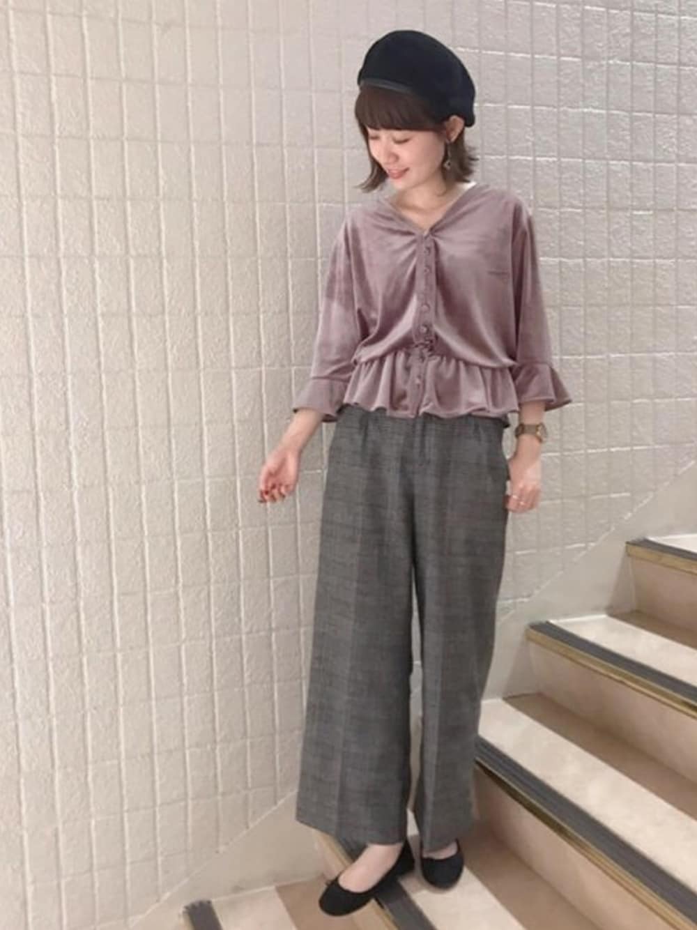 本日9/14(木)~24(日)の期間中、SPECIAL SET FAIRを開催中!! これからの時期に早速取り入れたいベロア素材のぺプラムトップスに、程よいゆとりを持たせたチェックのワイドパンツをコーディネート♪ こちらのコーディネートのITEMも対象商品となっております♪ flower新宿店 kokubun