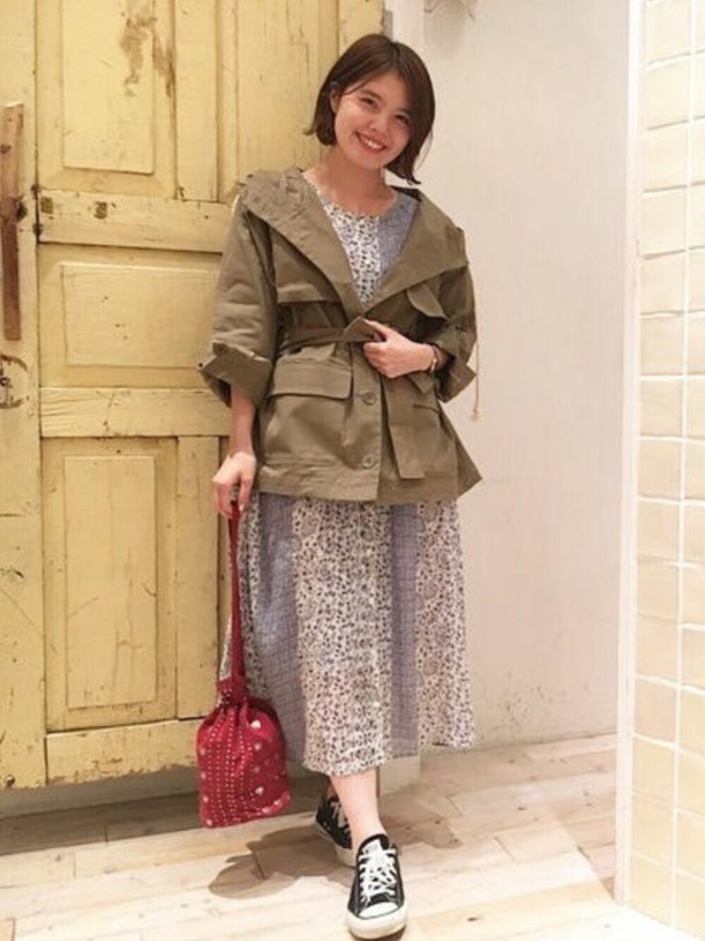 今季注目のアウターは大人らしさを出す為にゆるっと羽織り、ウエストをきゅっとしめました♡ 大きなフードがポイントで、程よくカジュアルなコーディネートに・・・♪ 女性らしいカラーのお洋服とも相性ばっちりです! flower堀江店 fujimoto