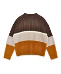 3種類のニットをミックスした贅沢な配色ニット・・♪ 上部はシンプルなケーブル編み、真ん中はもこもこしてて可愛いブークレ 一番下には、毛足が長いふわふわシャギーを使用♡ 少しゆとりがあるサイズ感は、ボトムも選ばず着回しも抜群です! flower 原宿店 tomita & sato