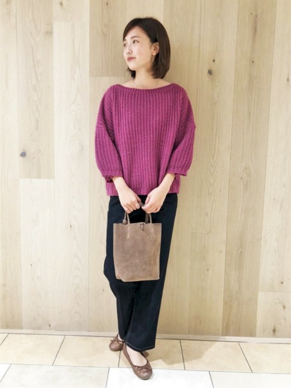 コロンとコンパクトなシルエットが可愛いニット♪ パッと目を惹く鮮やかなカラーは、コーディネートの主役に! デニムはカジュアルになり過ぎない濃いめのカラーを合わせて、シンプルな大人コーデがおすすめです! flower池袋店 son Instagram→@flower_son