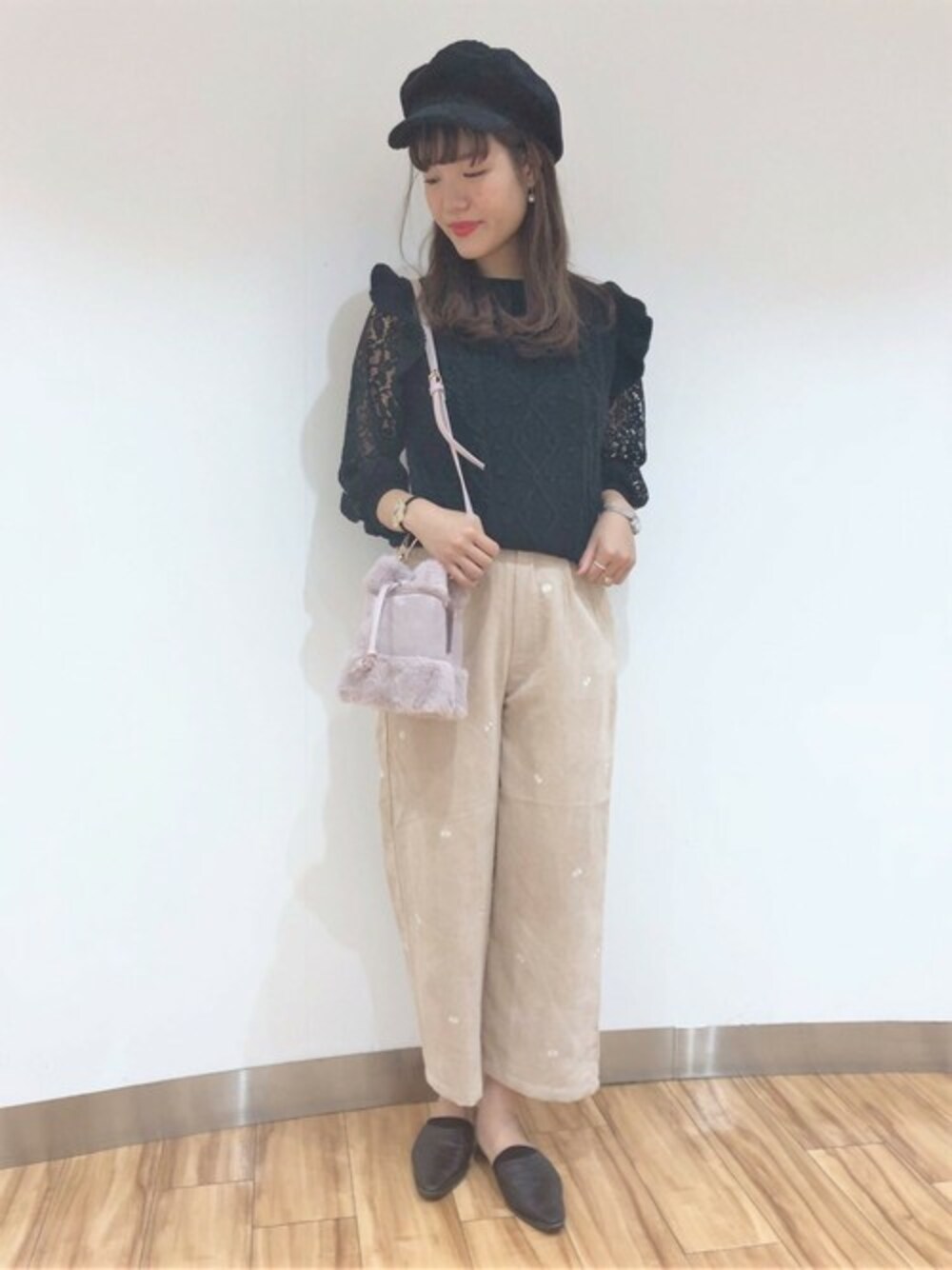 今の時期ならではの素材をたっぷり使ったあったかコーディネート♪ TOPSはニット×レースの新鮮な組み合わせは魅力的! 肩に付いたフリルは女性らしさをより強調してくれます★ ボトムはお花の刺繍がポイントのコーデュロイ素材。 ゆったりとしたシルエットで、カジュアルな印象に・・♪ flower福岡店 ito instagram→@flower_ito