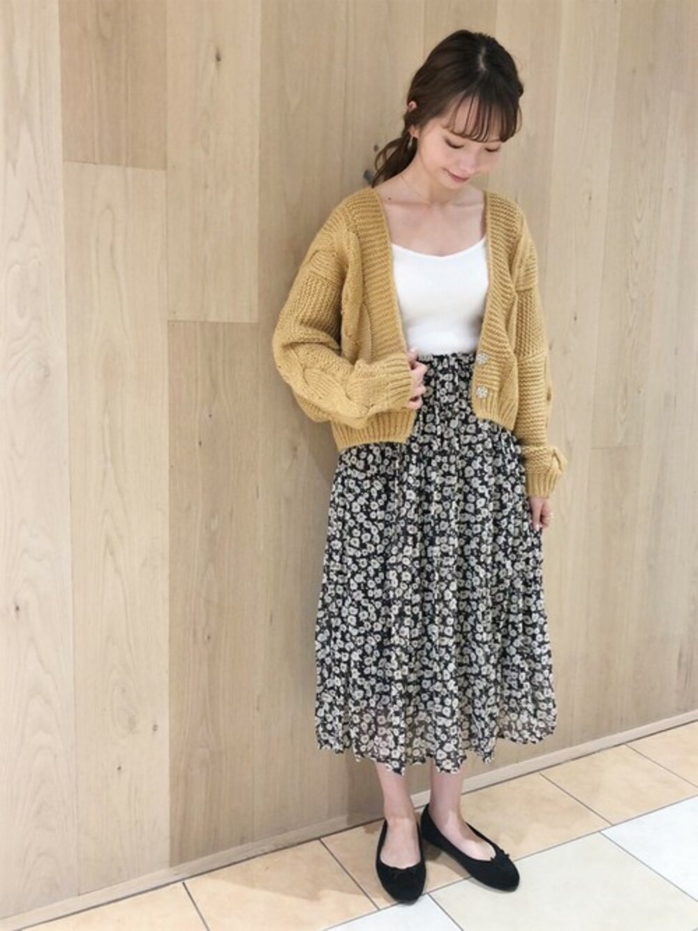 ざっくり編まれたボリュームニットカーディガン♪ ゆるっと肩を落として羽織るだけで、こなれた印象に・・★ スカートはクシャっとしたプリーツ加工がポイントの花柄! 女性らしさと大人っぽさが演出できるマストアイテムです♪ flower池袋店 yagi instagram→@flower_yagi