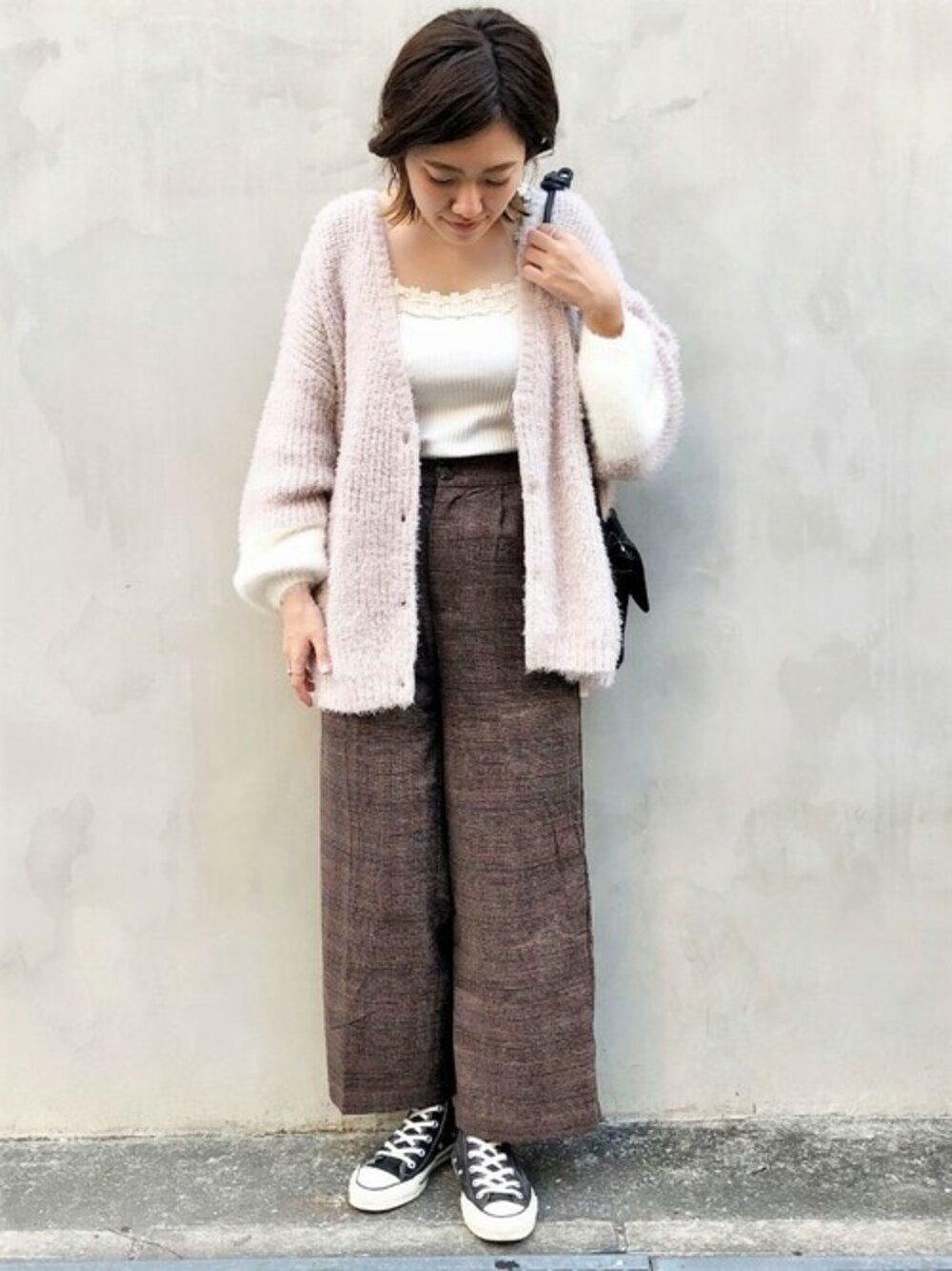 flower(flower )のカーディガン/ボレロ「マイルドバイカラーカーディガン」を使ったコーディネート