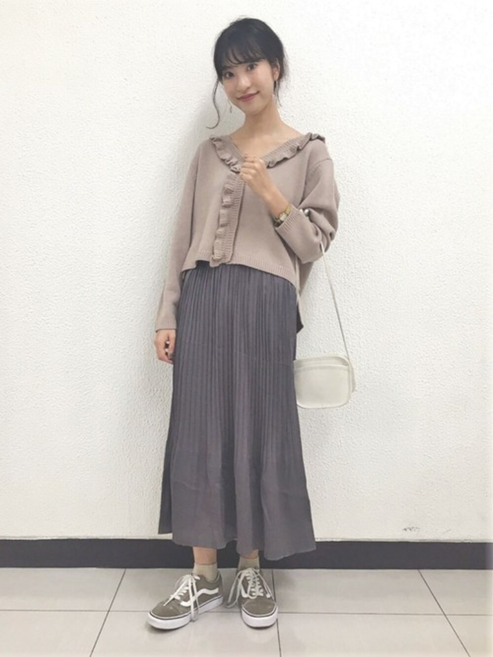 コンパクトなサイズ感で、バランスよく着られるカーディガン♪ ショート丈なのでボトムも選ばず、前を全て閉めてトップス感覚でも可愛いデザインです! 歩くたびに揺れる軽やかなプリーツスカートと合わせた大人っぽいカジュアルスタイルがおすすめ☆ flower横浜店 iizasa instagram→@flower_iizasa