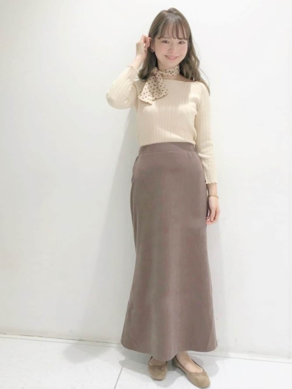 スウェード風の柔らかい生地で上品な印象のロングスカート♡ 今の時期らしいこっくりとしたブラウンの色味で落ち着いた印象に・・★ トップスはシンプルにして、首元には今季注目のスカーフをプラス! flower池袋店 yagi instagram→@flower_yagi