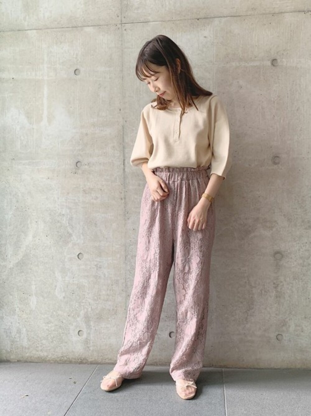 大きなお花のレースが目を惹くレースパンツ♡ テーパード型なので、すっきりとした印象にコーディネートがまとまります。 秋の訪れを感じさせるコンパクトニットを合わせました♪ flower堀江店 utsumi instagram→@flower_horie