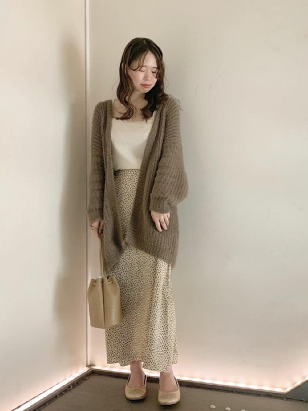 小さなお花柄が大人可愛いスカート♡ 広がりすぎないシルエットなので、ゆるっとしたカーディガンとの相性◎ 柔らかい色味でまとめて女性らしさ溢れるスタイリングに♪ flower堀江店 yasuda instagram→@flower_yasuda