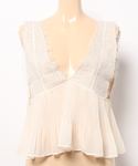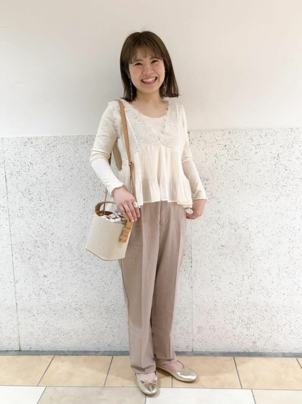 レイヤードスタイルを楽しめるビスチェ。 軽やかで春らしいレースとプリーツ加工のシフォン生地が目を惹きます・・♡ くすみピンクのパンツを合わせれば、 大人可愛いフェミニンスタイルに! 足元はバレエシューズですっきりと見せるのがおすすめです。 池袋店 takada instagram→@flower_ikebukuro
