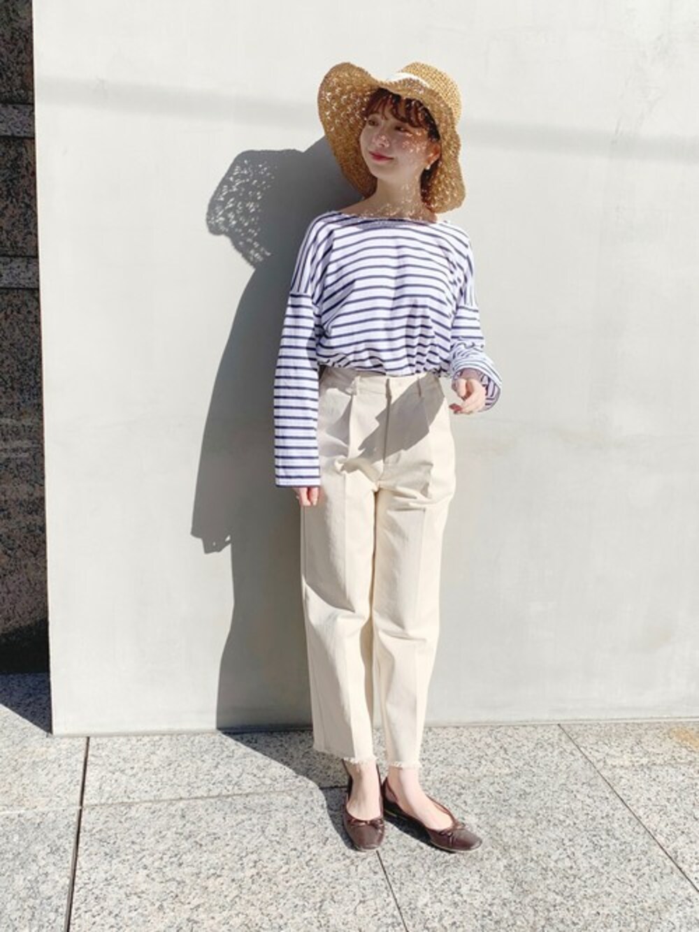 春夏の定番マリンコーデ♡ カジュアルな印象のボーダートップスも、 柔らかい印象になるivoryのパンツで女性らしさをプラス。 これからのコーディネートに欠かせない、大きめブリムとリボンが可愛いハットは 気になる紫外線もカットしてくれるのが嬉しい♡ PRESS yagi instagram→@flower_yagi