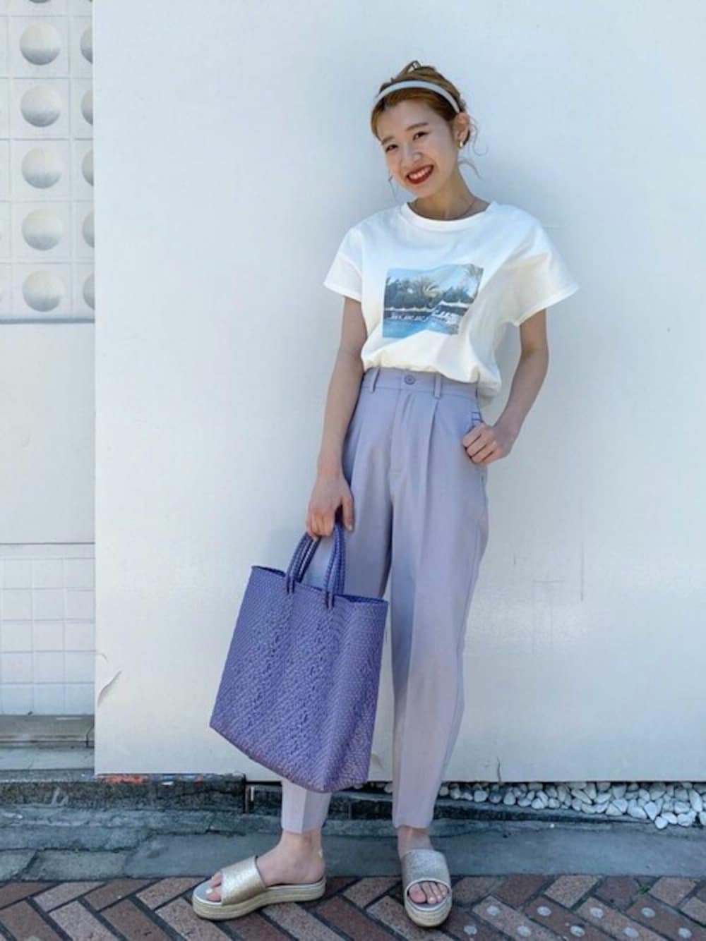 リネン混の生地感でリラックスした雰囲気で着こなせるパンツ♡ 明るい雰囲気が春夏にぴったりなラベンダーカラーを シンプルにTシャツでスタイリング! シンプルなコーディネートには、小物で差をつけて⭐︎ 新宿店 taira instagram→@flower_taira