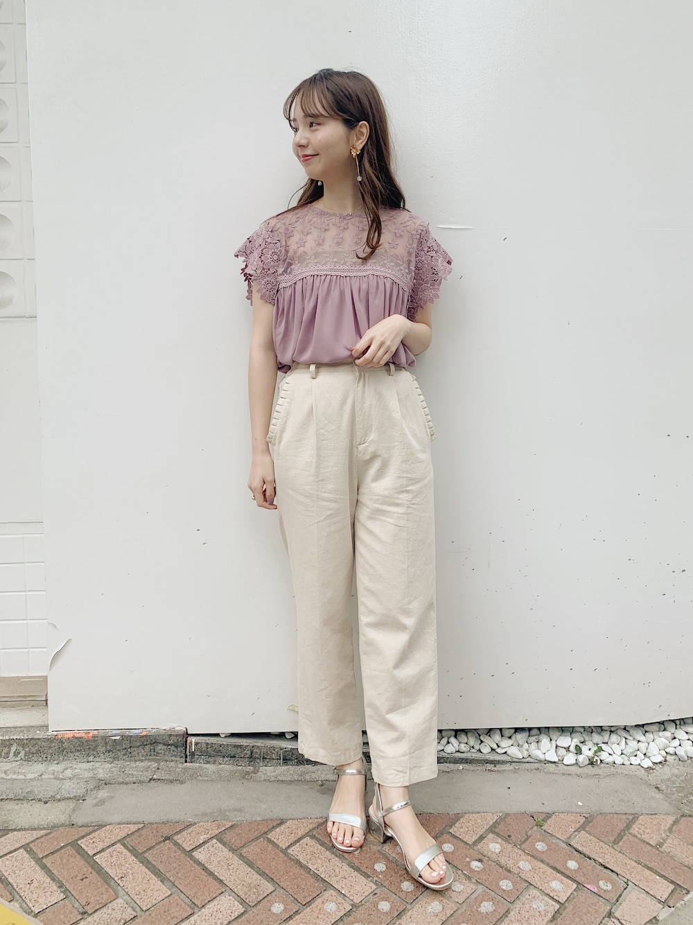 flowerらしさ溢れるレースミックスブラウス♡ 可愛らしいピンクは、アイボリーのパンツを合わせて クリーンな印象に・・♡ PRESS yagi instagram→@flower_yagi