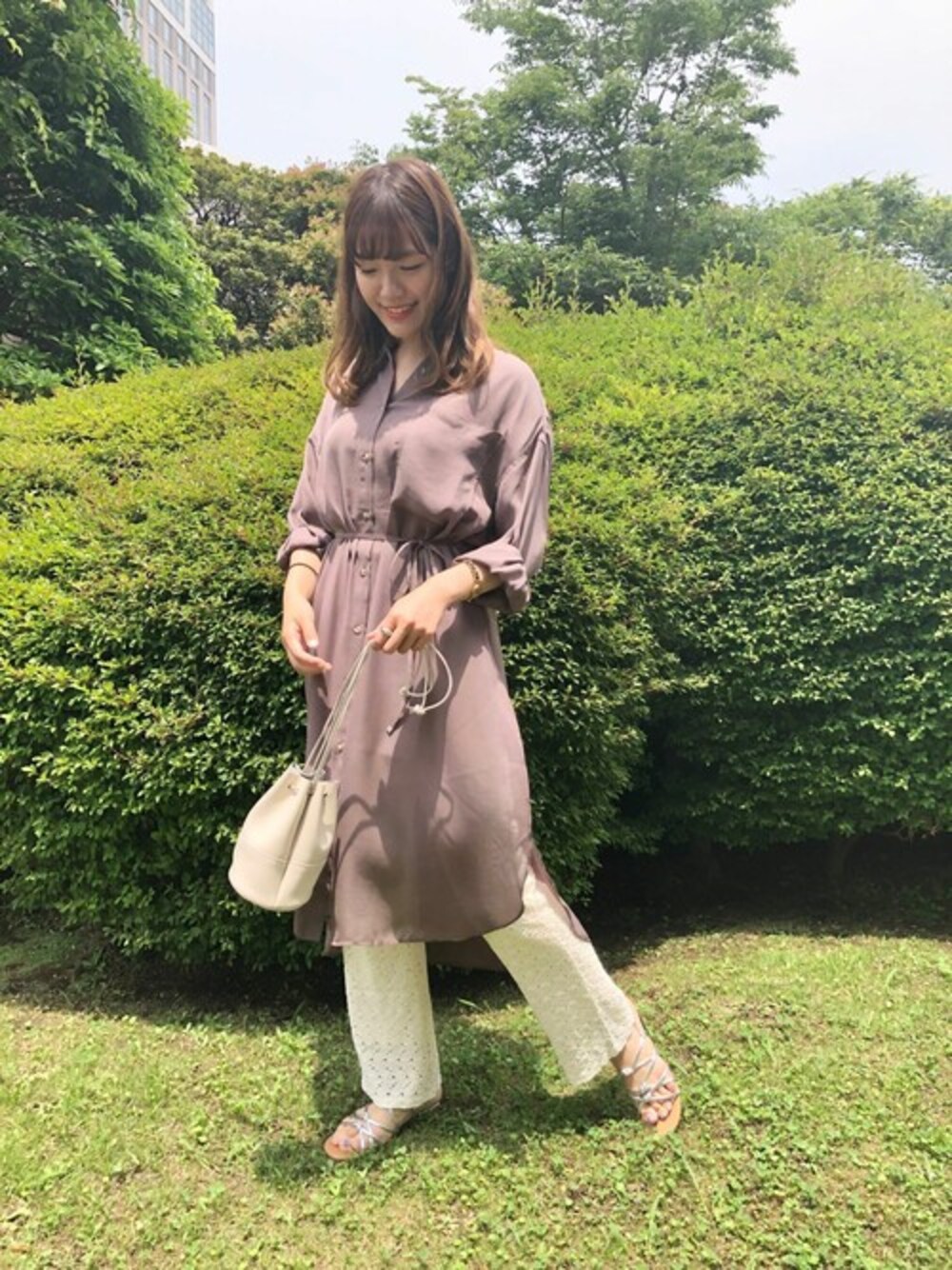 きれいめなシャツワンピースをレースパンツと合わせて、スタイリング。 小さなバッグをポイントに、カジュアルになりすぎないコーディネートで! flower 横浜店 Ito Instagram @flower_ito