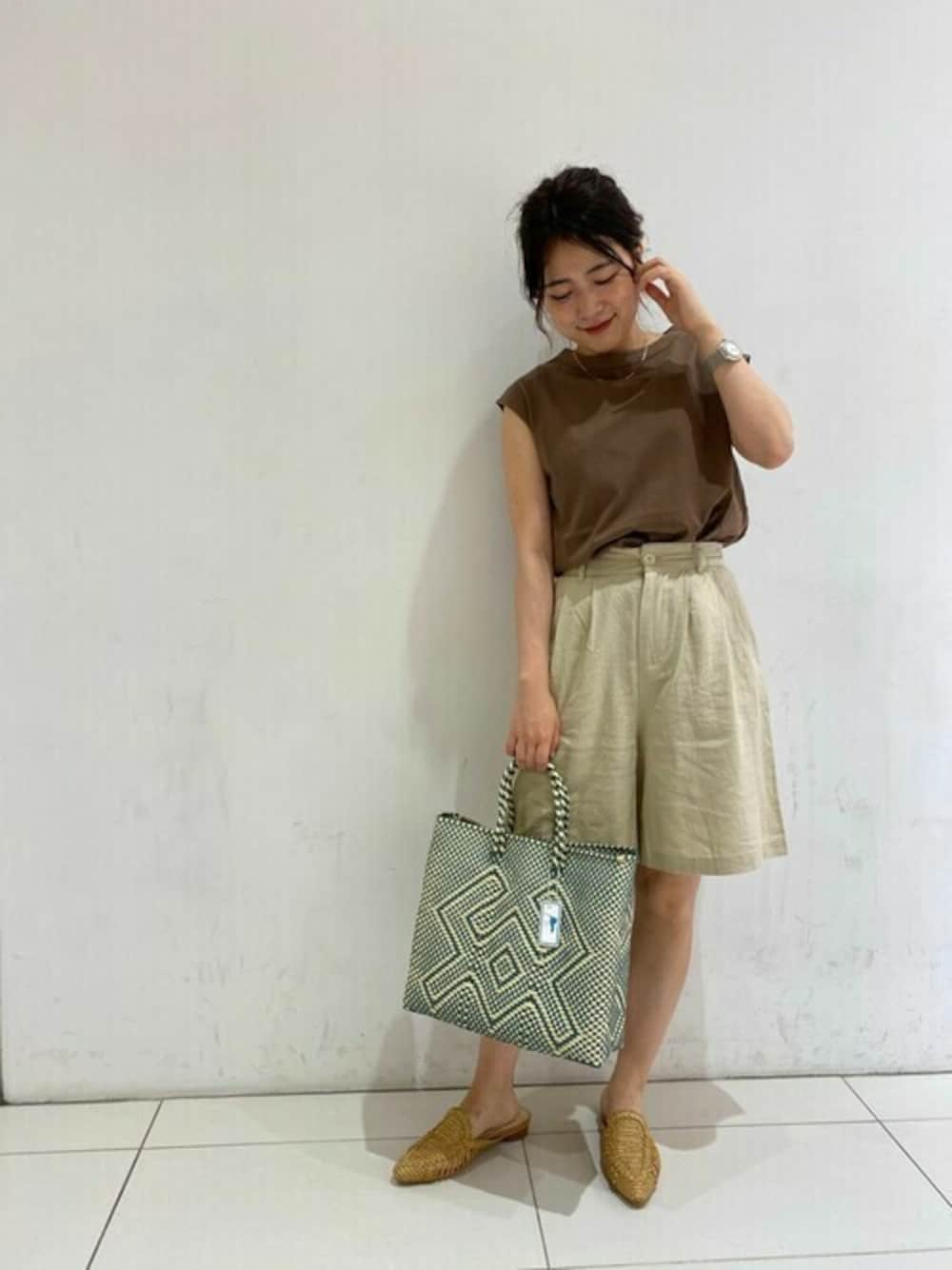 茶系でまとめたコーディネート。今季人気のハーフパンツを合わせて。 大人っぽく夏らしいコーディネート。 flower Lucua店 Horinouchi Instagram @flower_lucua