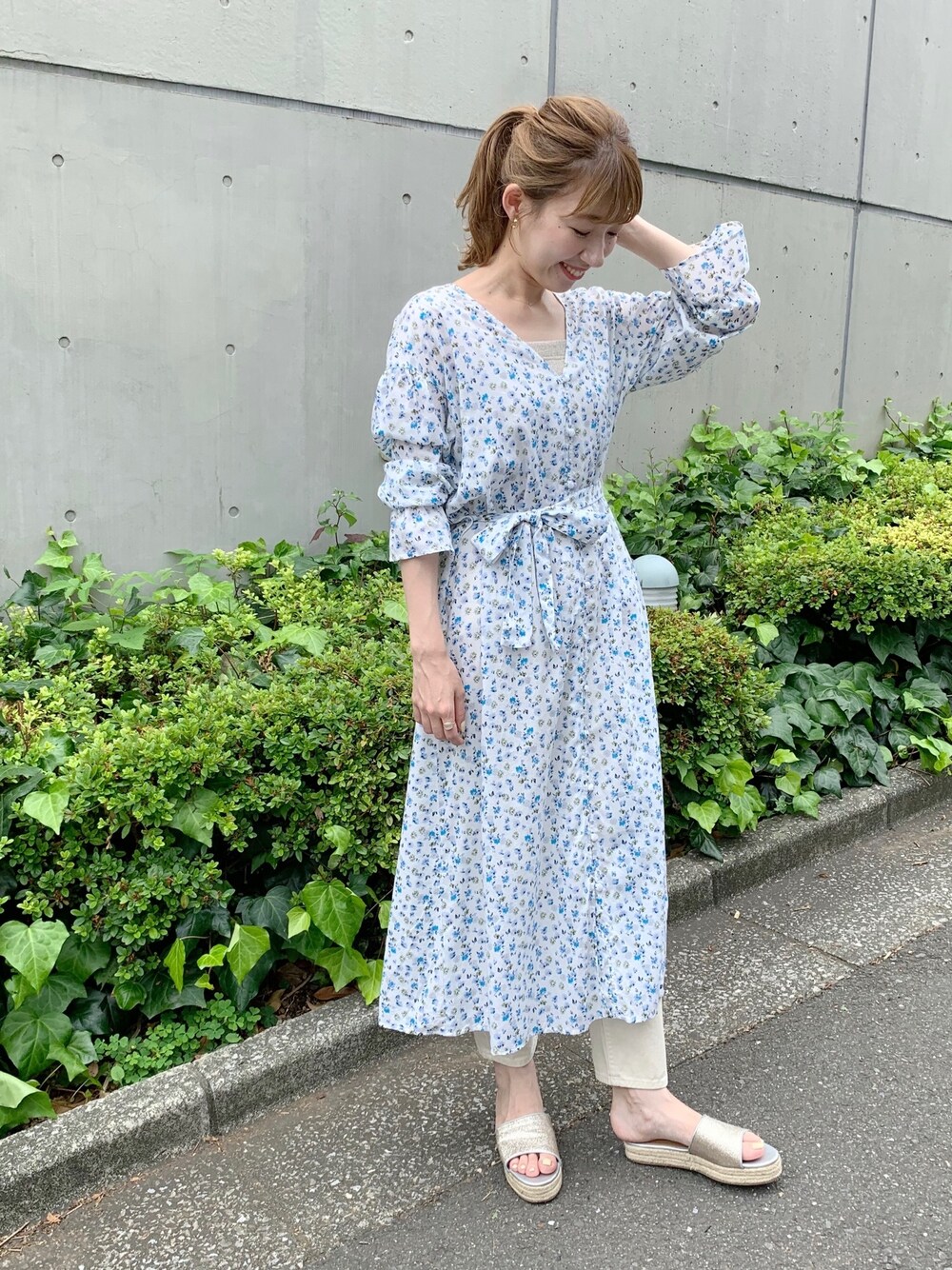 爽やかなカラーが夏にぴったりな小花柄ワンピース♡ カジュアルに、パンツとレイヤードしたスタイリングに♪ ウエストマークすればスタイルアップ効果も◎ staff sakamoto instagram→@flower_sakamoto