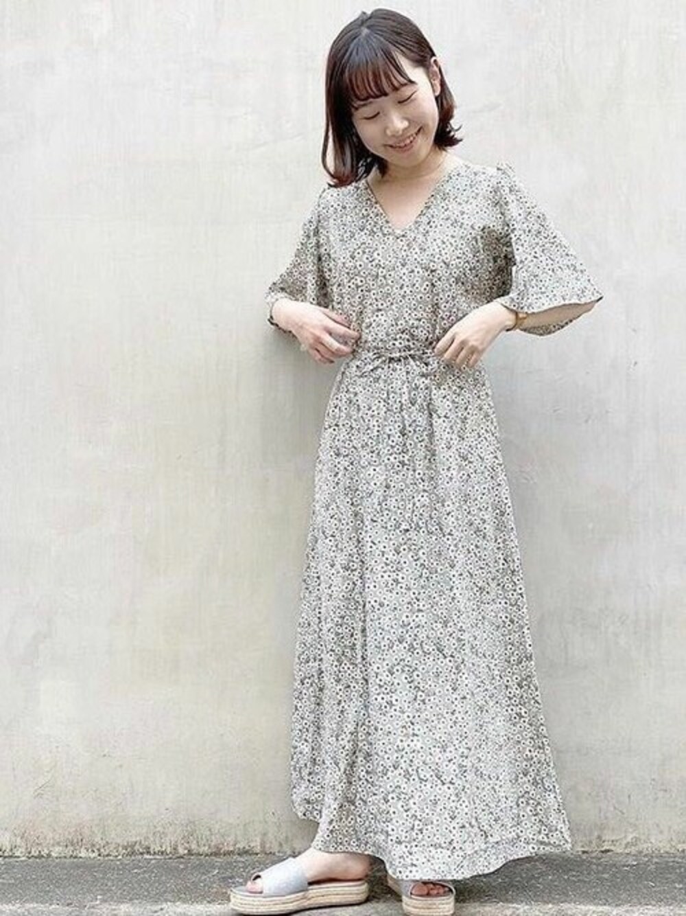 小花柄がかわいい、マキシワンピースを1枚で! 夏に涼し気なコーディネート♡ flower 堀江店 staff utsumi Instagram @flower_utsumi