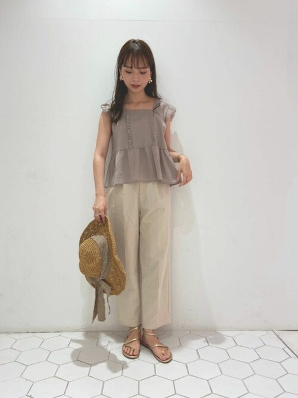淡いカラーでまとめた、夏のフェミニンスタイル♡ トップスはさりげないフリルデザインで 甘すぎないのが嬉しいポイント…! PRESS yagi instagram→@flower_yagi