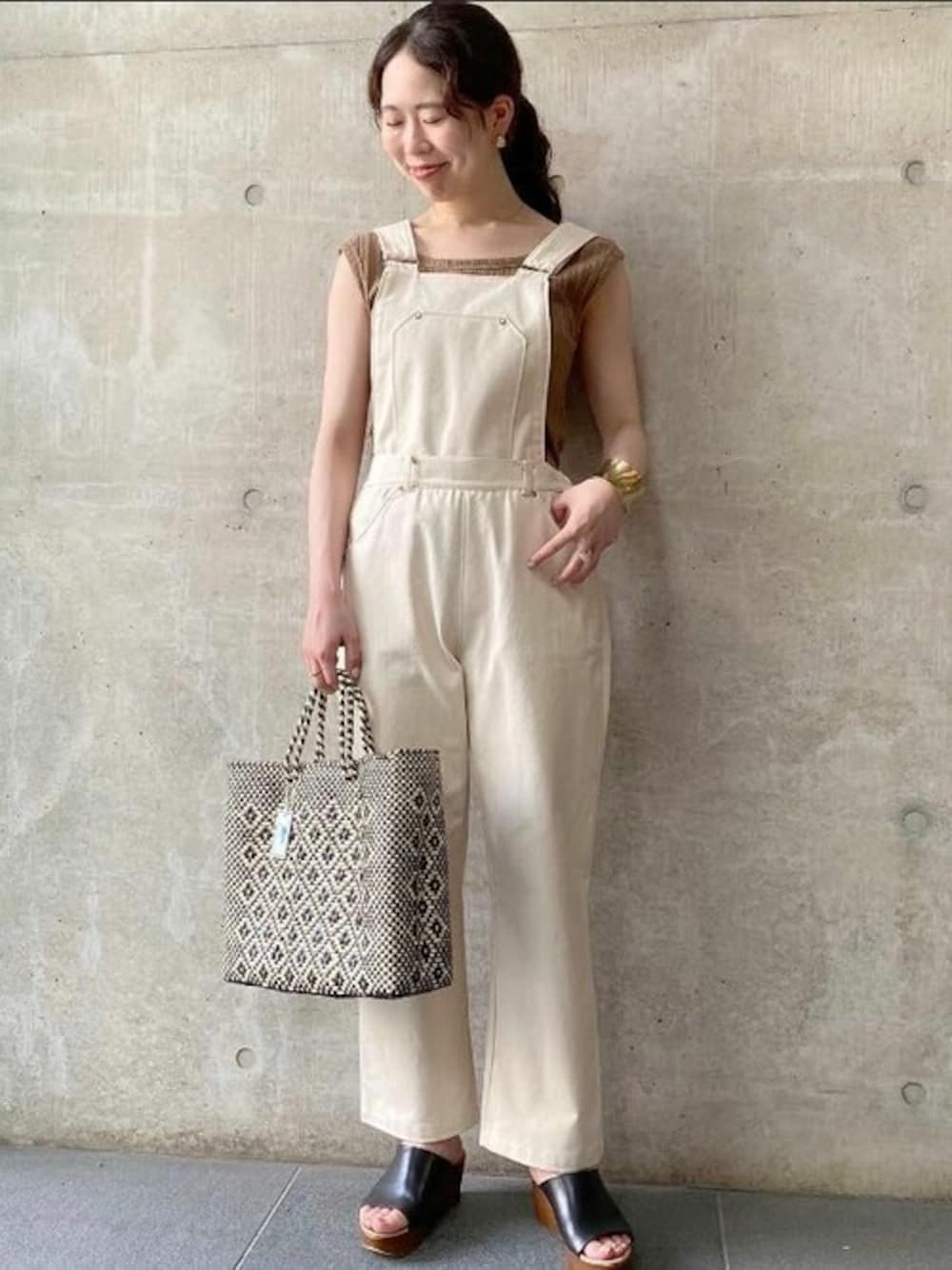 女性らしく着こなせるのサロペットは、 すっきりしたパンツラインがポイント♡ 小物にブラックを合わせて大人カジュアルなスタイルに。 堀江店 yasuda instagram→@flower_yasuda