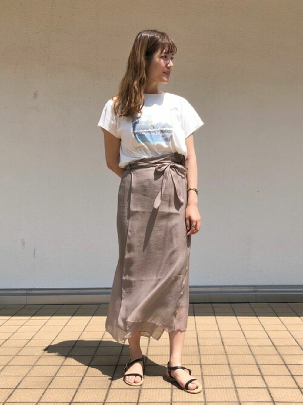 まだまだ暑い日々ですが、秋まで着れる秋カラーのスカートにT'sを合わせたスタイリング♡ 足元はスッキリしたストラップサンダルで! flower 横浜店staff ito Instagram @flower_ito