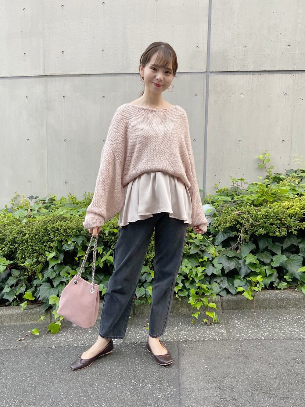 ピンクのアイテムは、ブラックデニムで甘さを抑えたスタイルに。 透かし編みニットは秋マストで取り入れたい♡ PRESS yagi instagram→@flower_yagi