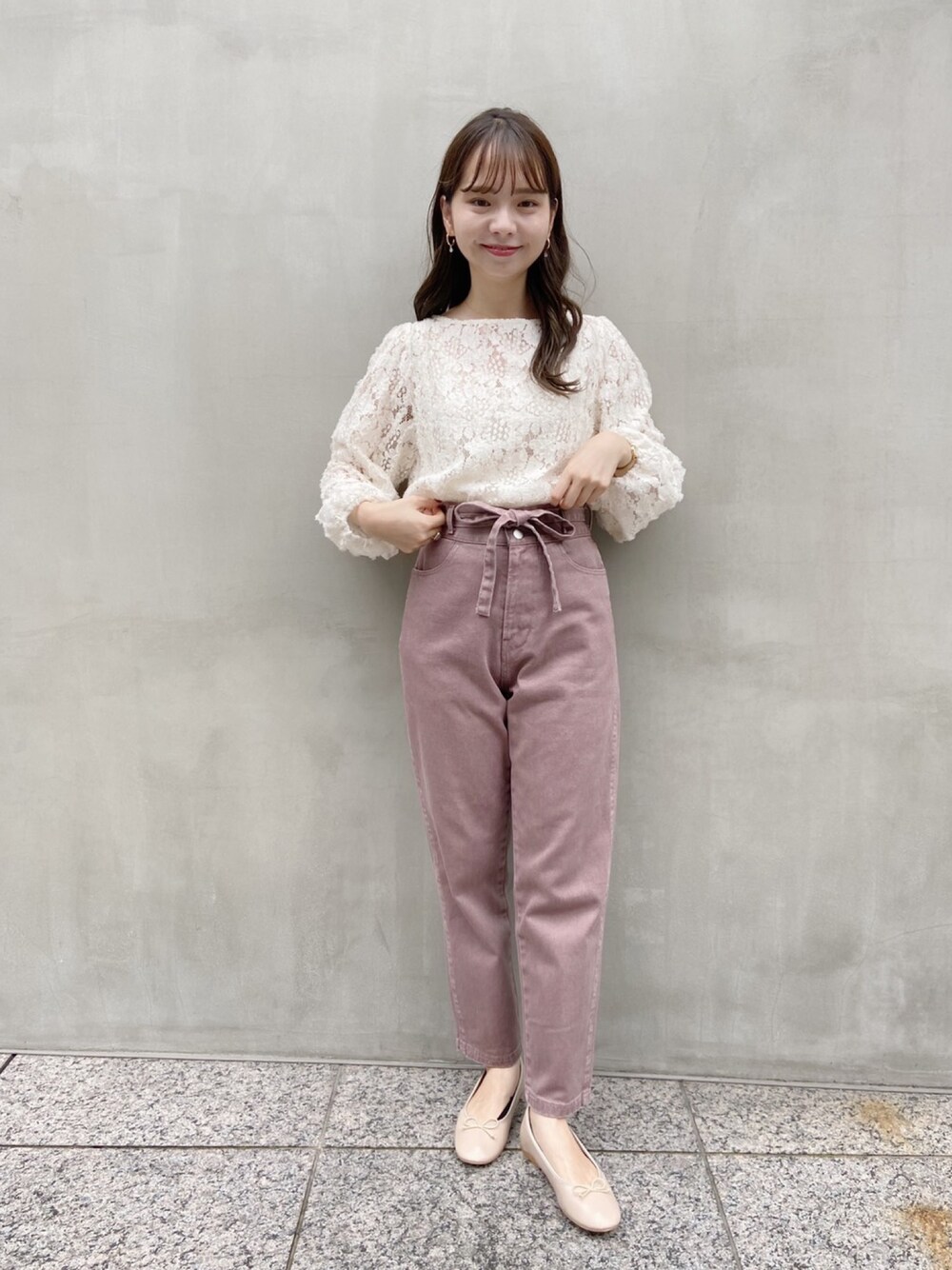 レースのトップスは、バルーン袖がかわいい♡ ロージーな色を合わせて、トーンスタイル♡ flower PRESS yagi Instagram @flower_yagi