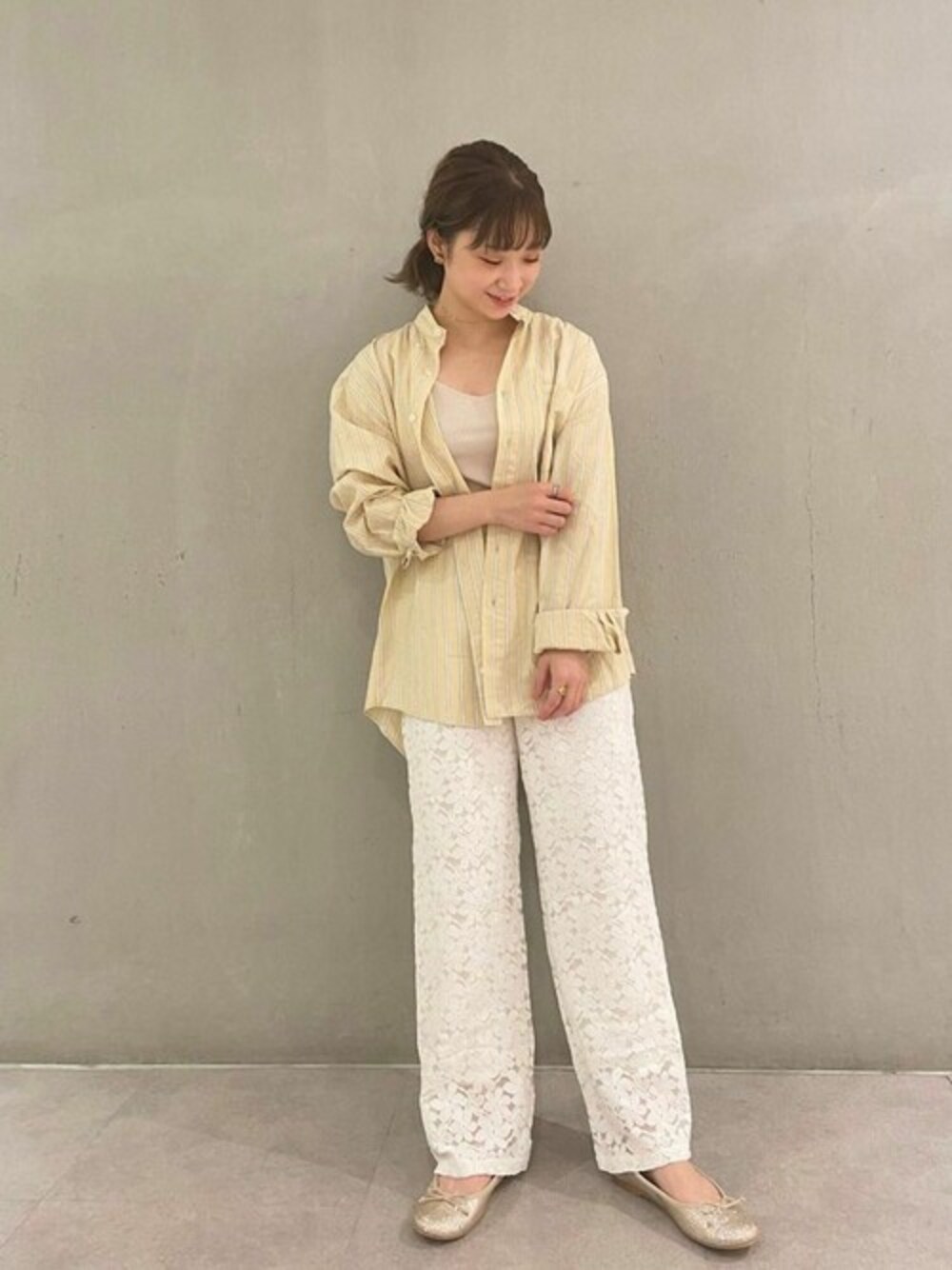 レースパンツにシャツを合わせて♡ カジュアルとガーリーの組み合わせ! flower 池袋店staff kimura Instagram @flower_kimura
