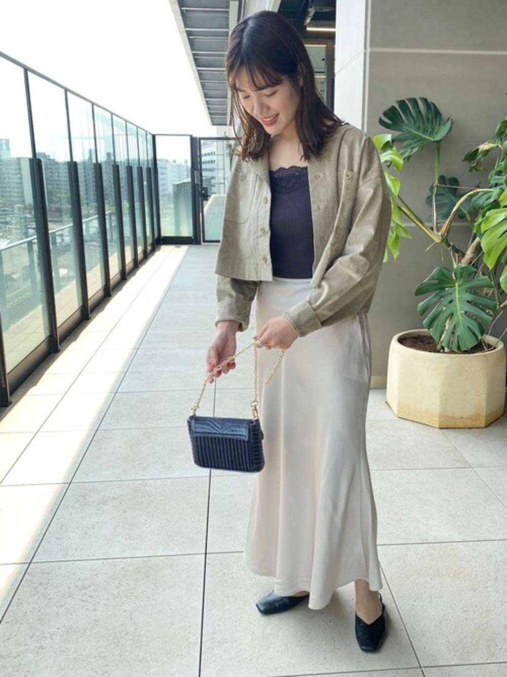 お気に入りのコーディネート♡ マーメイドスカートに、秋らしい羽織。これからの季節には羽織りやすいアイテム♩ 今年は、小さなチェーンバッグの気分! flower横浜店staff ito Instagram @flower_ito