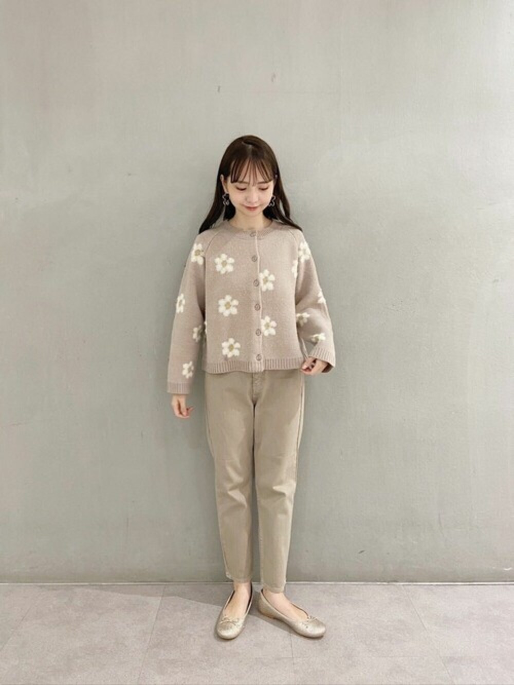 お気に入りのワントーンコーデ♡ お花柄のニットがポイントです♩
