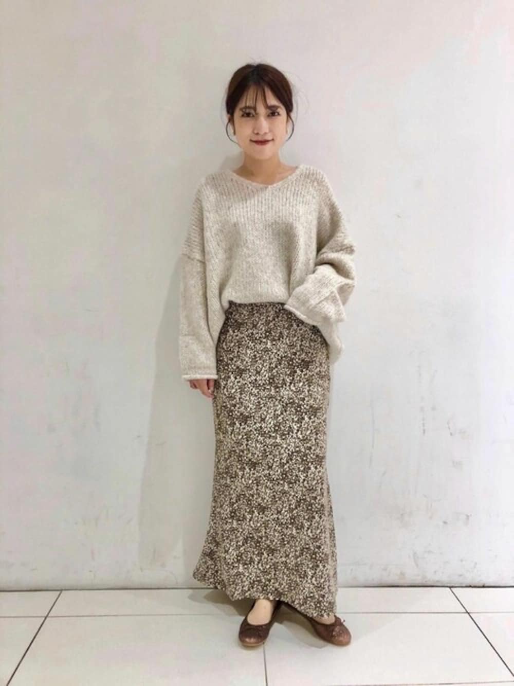 ゆるっとニットに合わせたい マーメイドシルエットのスカート♡ レオパードの様な花柄が秋にぴったり! ルクア店 horinouchi instagram:@flower_horinouchi