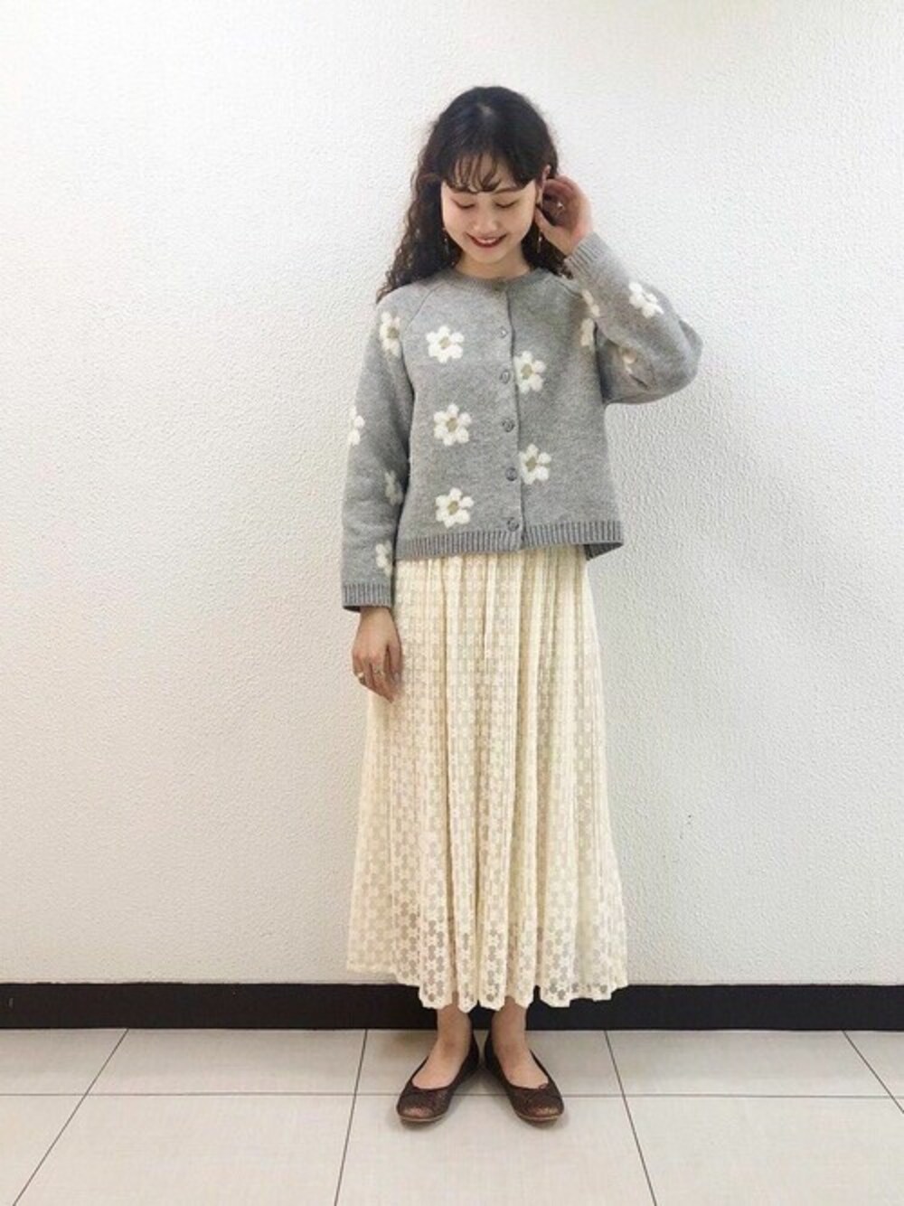 花柄ニットを主役に レーススカートを合わせたガーリースタイル♡ 横浜店 arase instagram:@flower_arase