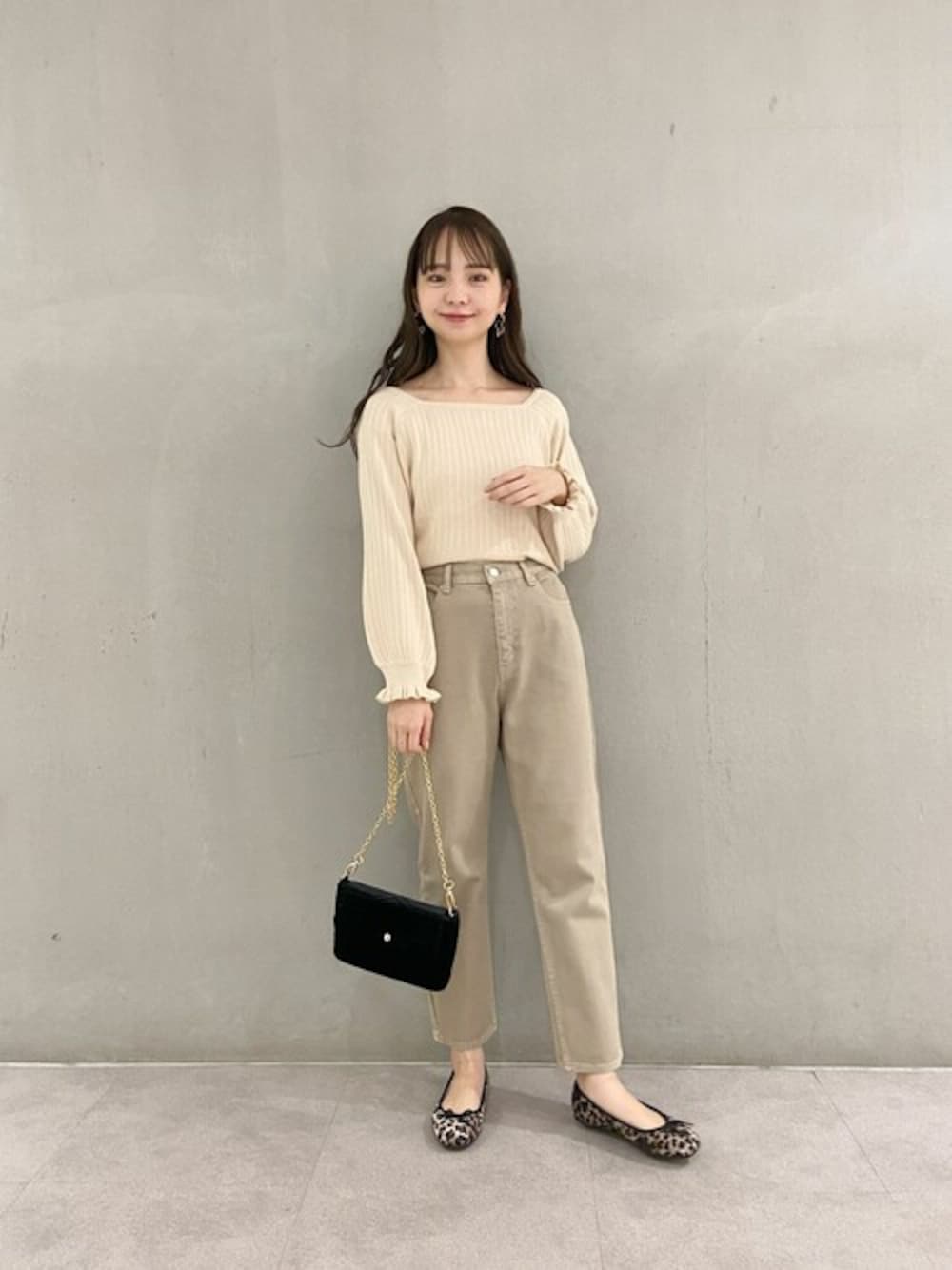 ベージュのワントーンコーデ♡ 少しくすんだベージュのパンツが秋っぽい♪ 小物はブラックとレオパードで締めるのが◎ PRESS yagi instagram:@flower_yagi