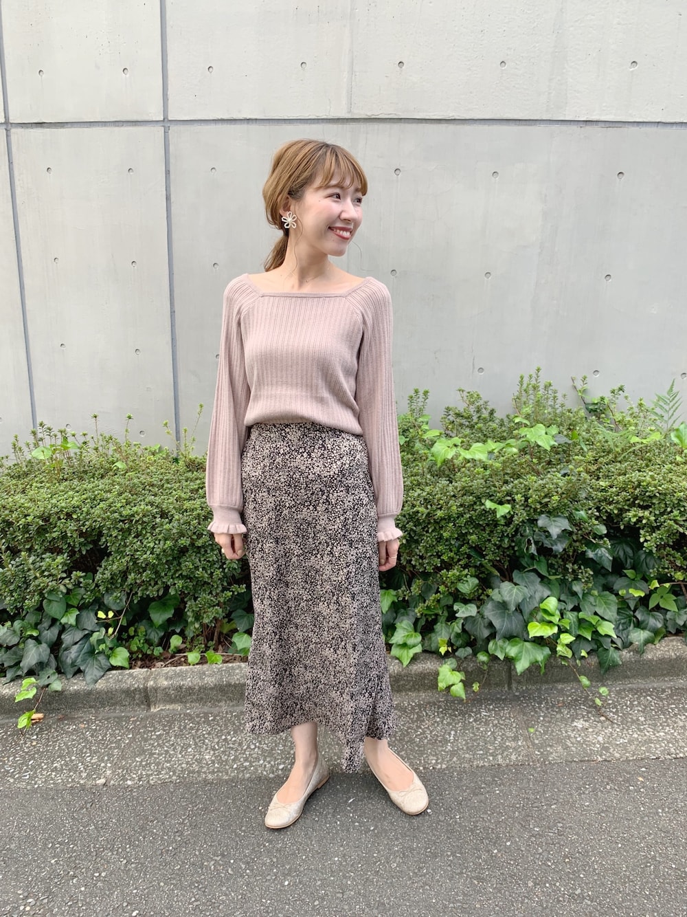 レオパード柄のような花柄スカート♡ 今の季節はすっきり見えのリブトップスとの合わせが◎ PR staff sakamoto instagram:@flower_sakamoto