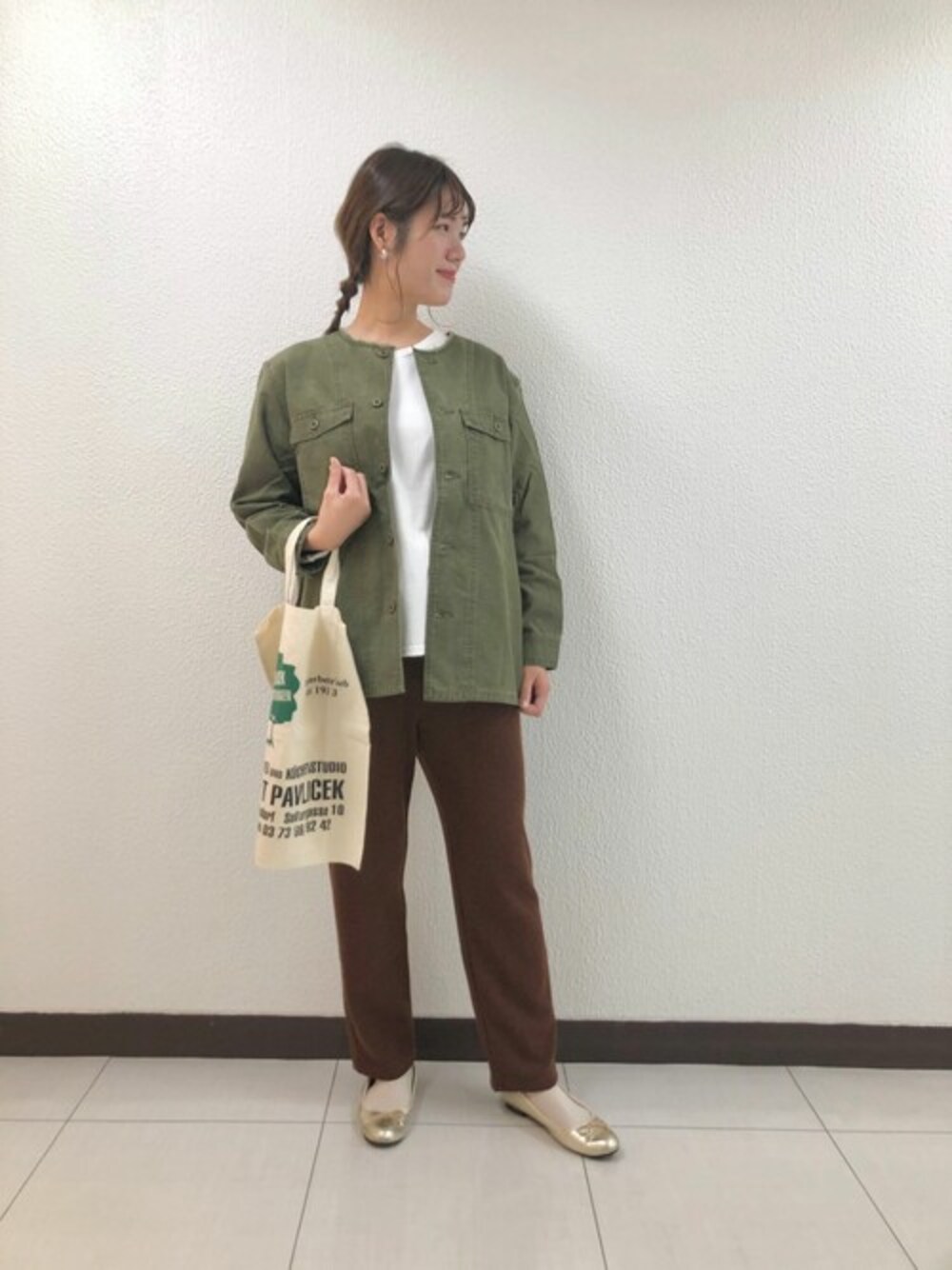 履き心地抜群の、ゆったり休日スタイル♡ カジュアルだけど、足元をゴールドのバレエシューズにすることで、きちっと感も出ます! flower 横浜店staff ito Instagram @flower_ito