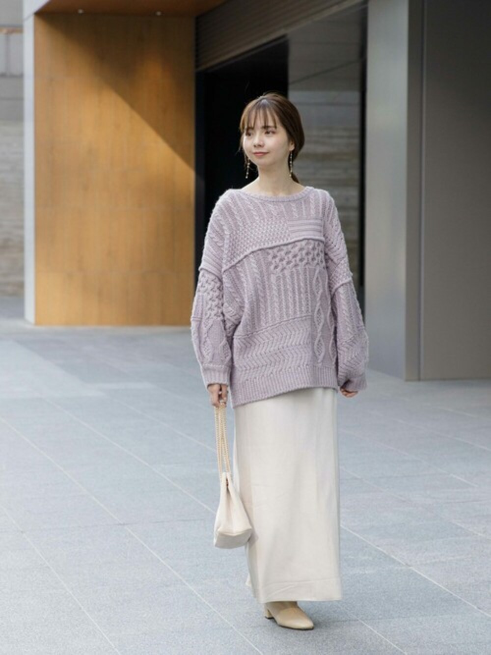 flower(flower )のニット/セーター「ルーズパッチワークアランニット」を使ったコーディネート