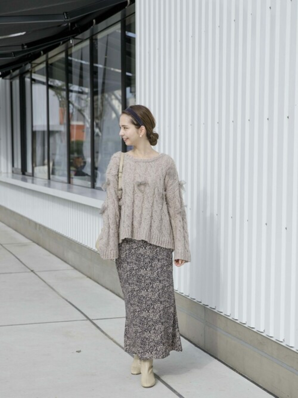 リボンがポイントのニット、大人っぽく落とし込むのが今の気分♡ きれいめなスカートにブーツを合わせて♩ flower PRESS yagi Instagram @flower_yagi