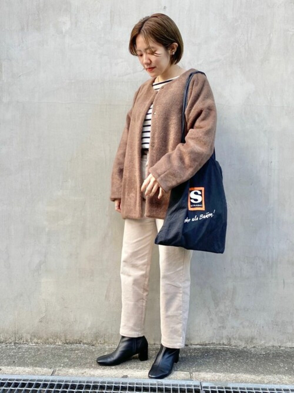 ふわふわの素材感が可愛いアウターは カジュアルに合わせるのが気分♡ 堀江店 okuyama instagram:@flower_okuyama