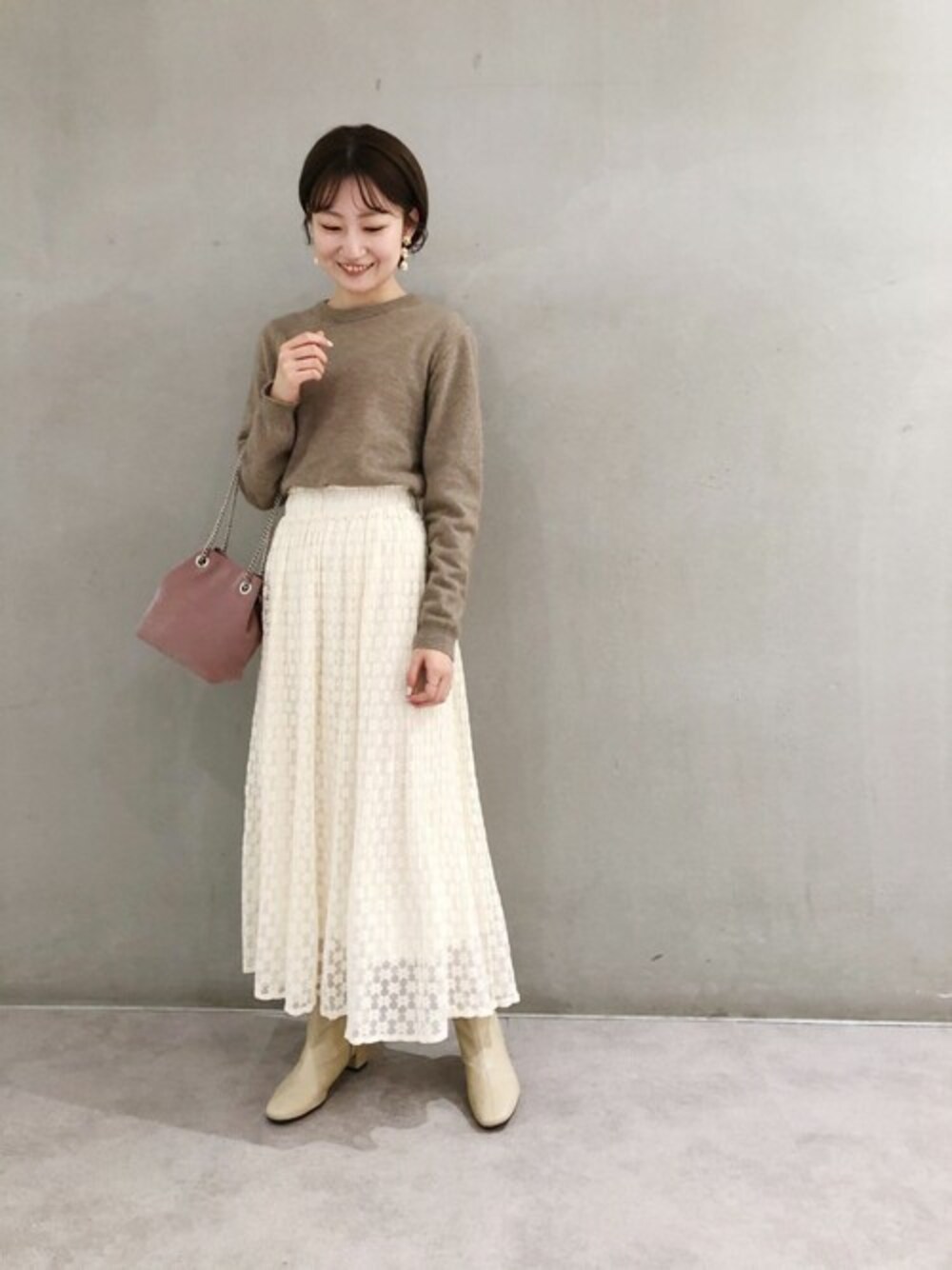 デート服♡オトナっぽく、女性らしく♩ カラーのトーンを合わせて、バッグを差し色に♡ flower 池袋店staff yoshida Instagram @flower_yoshida