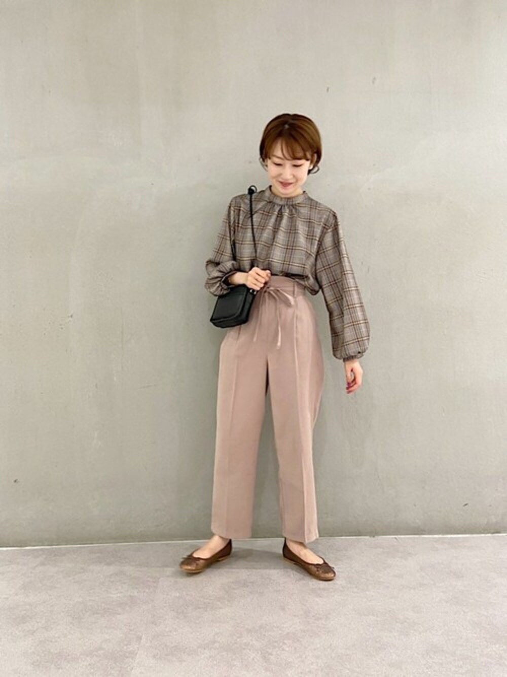 シルエットがかわいいブラウスを、きれいめなパンツと合わせて♡ ウェストのさりげないリボンとvintageのcoach バッグをポイントに! flower 池袋店 staff yoshida Instagram @flower_yoshida