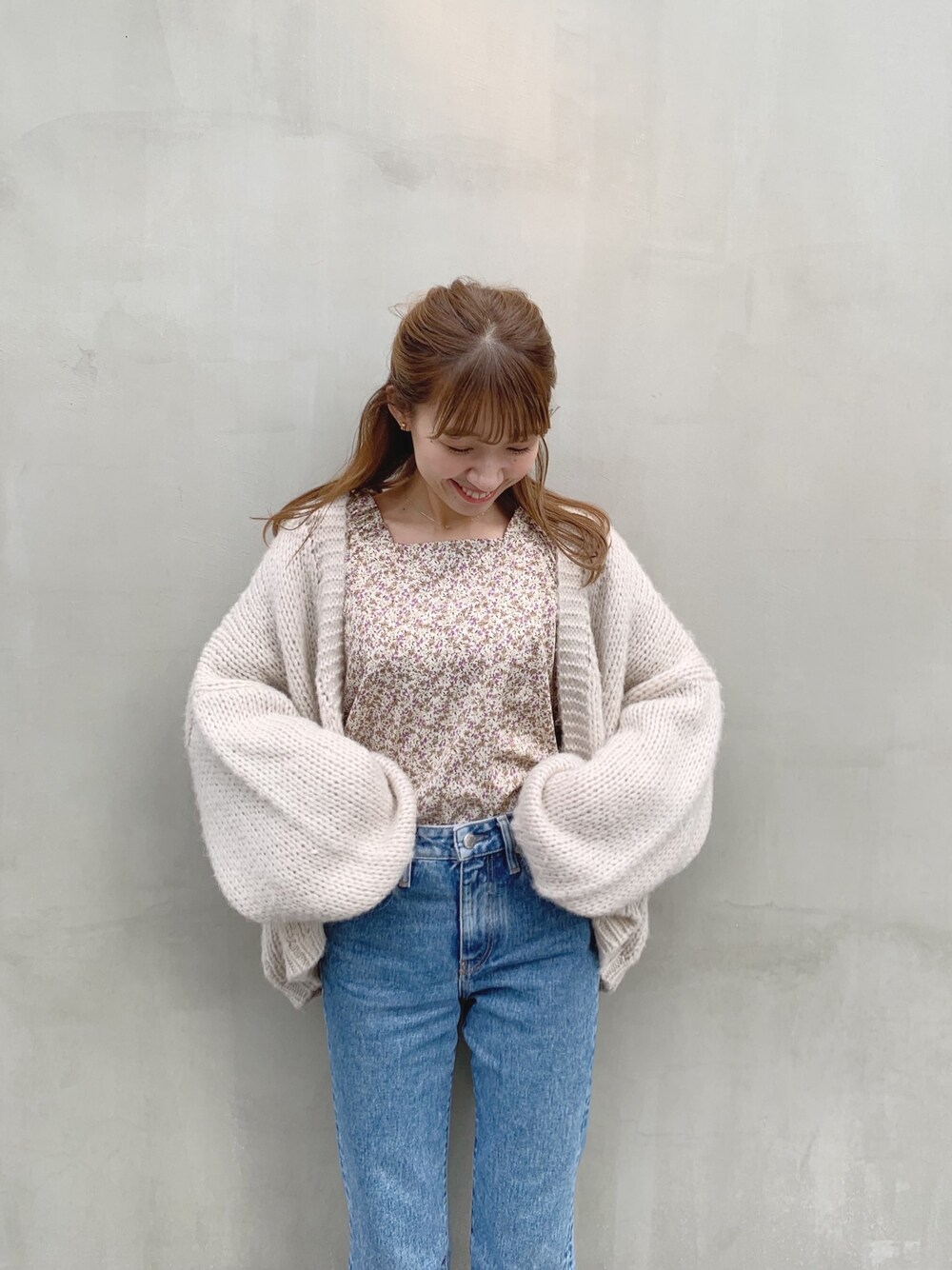 春先まで使える花柄ブラウス♡ デニムでカジュアルに着るのがかわいい! PR staff sakamoto instagram:@flower_sakamoto