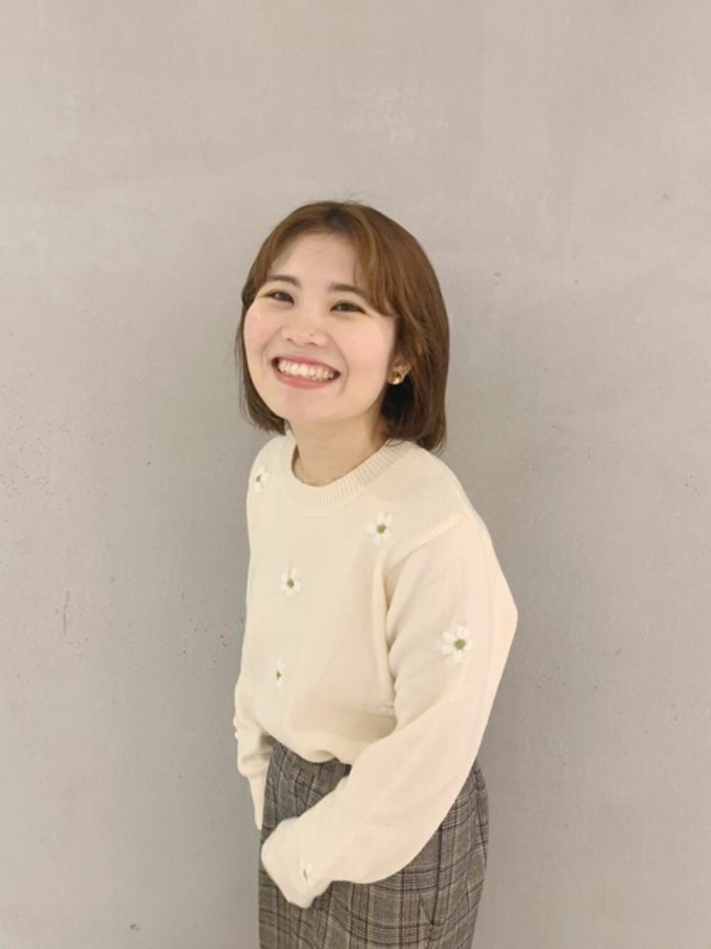 花柄の刺繍が施されたニット♡ 派手すぎないので、柄ボトムスに合わせても◎ 池袋店 takada instagram:@flower_ikebukuro