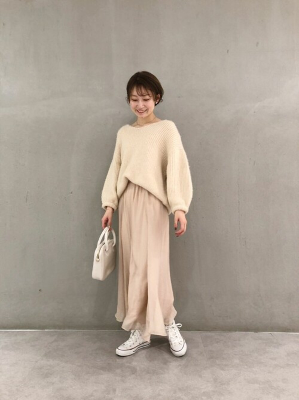 寒い日が続くので、厚手のニットがまだまだ重宝しています♡ 軽い素材のスカートにコンバースを合わせて、オトナっぽく! flower 池袋staff yoshida Instagram @flower_yoshida