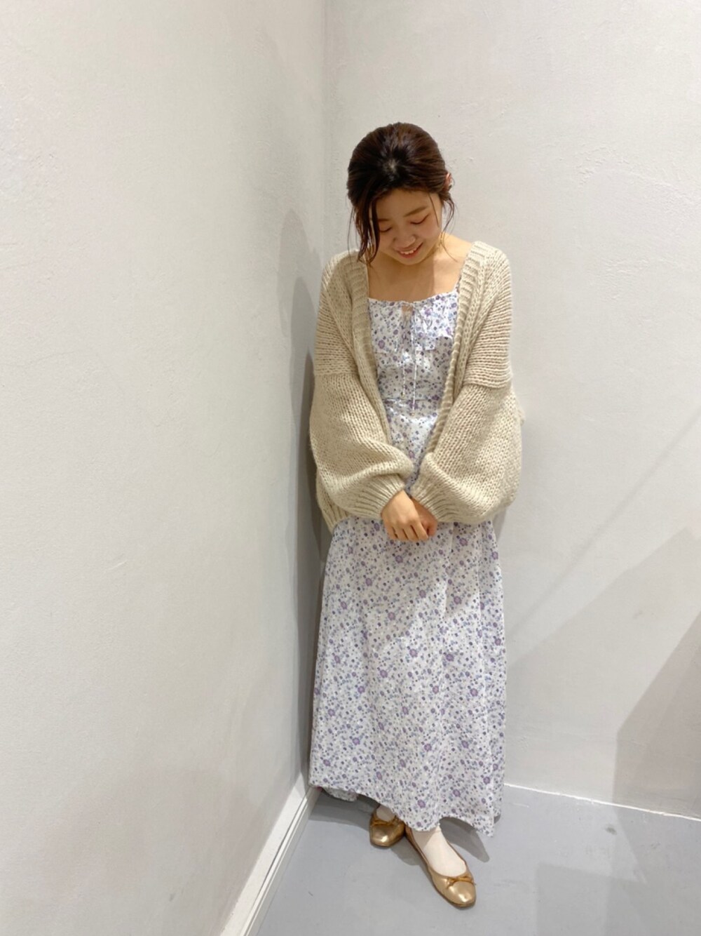 カーディガンの袖のたぽっと感がかわいい♡ 合わせたキャミワンピースは今季イチオシのflowerオリジナルテキスタイルシリーズ♩ flower横浜店staff funahashi instagram : @flower_funahashi