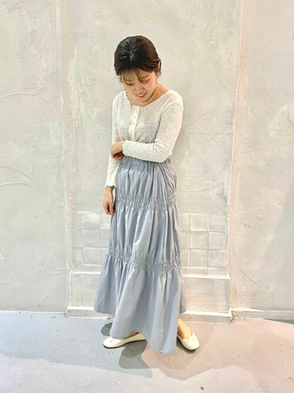 ギャザーたっぷりのボリュームスカート♡ レーストップスと合わせてガーリーに♩ flower横浜店staff funahashi instagram : @flower_funahashi