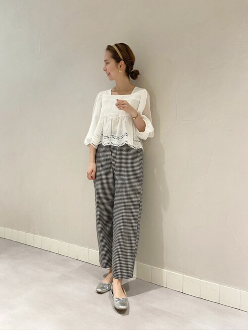 ギンガムチェック×レースブラウスの甘い組み合わせも モノトーンで大人かわいい印象に♡ PRESS yagi instagram : @flower_yagi
